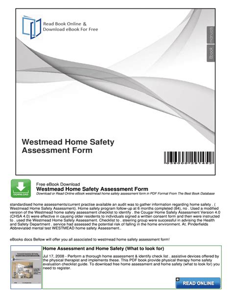 Free PDF Westmead Home Safety Checklist mobipocket Open Library